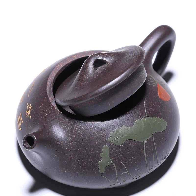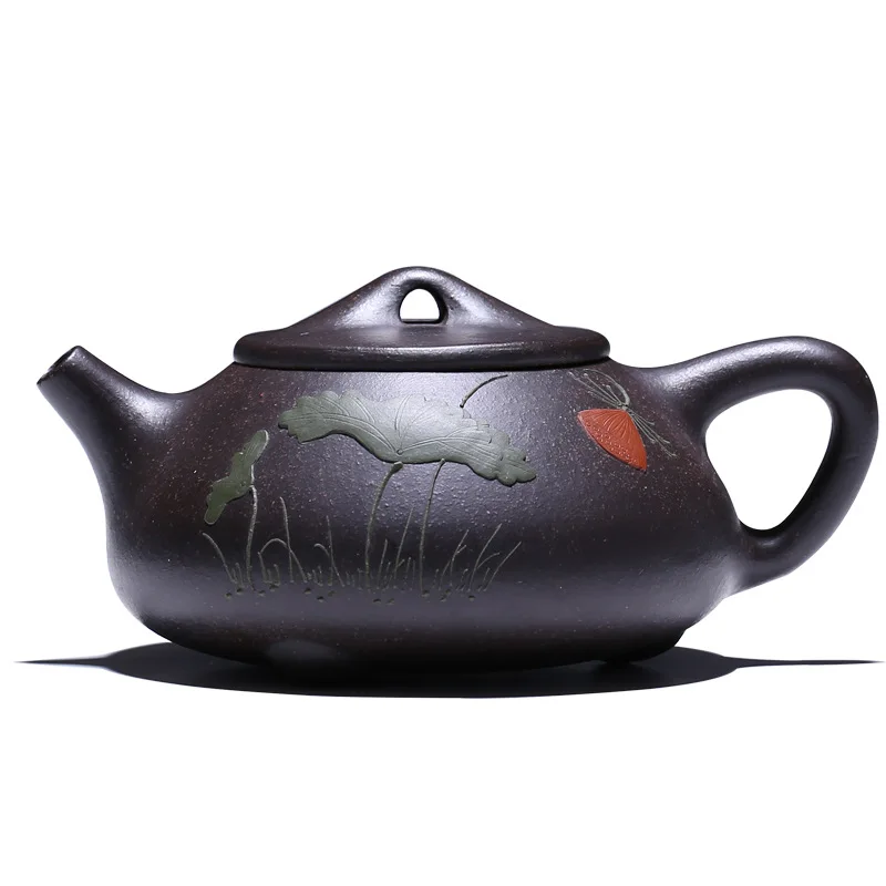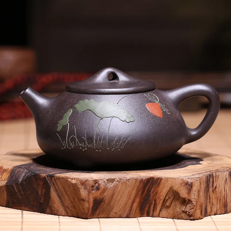 Black stone scoop hand painted tea potHandmade purple clay tea set kettle kung fu teapot Chinese cr