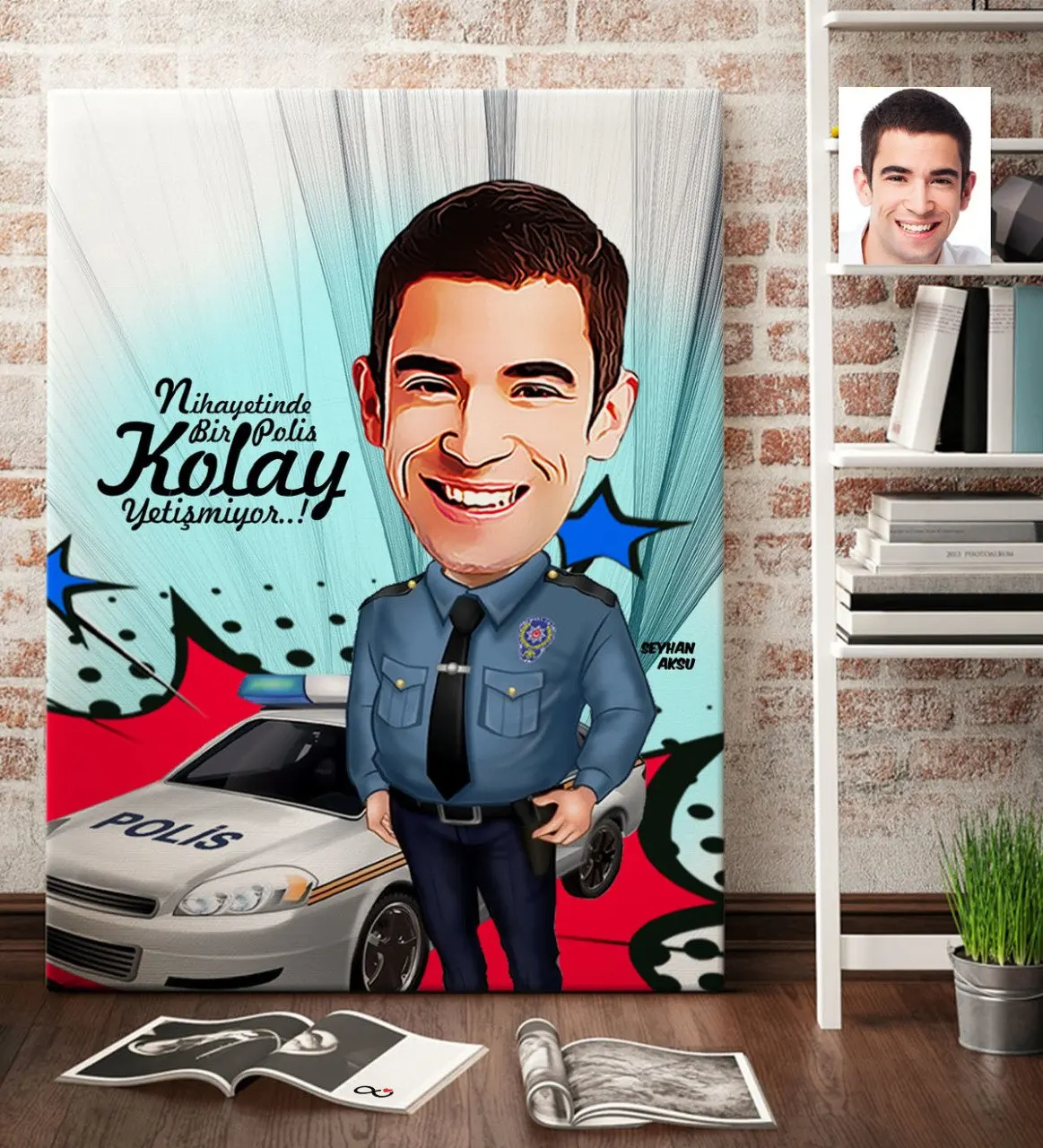 Personalized Bay Police Cartoon Canvas Table (70x100 cm.) 6