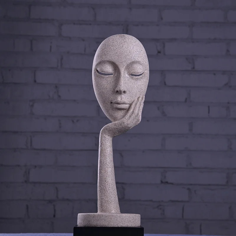 Best Seller VILEAD 15" Sandstone Abstract Mask Statuettes Miniatures Artistic Mask Figurines Window Display Cab