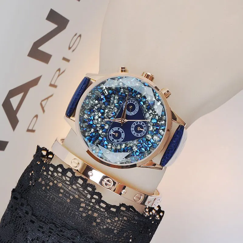 Luxury Elegant Women Wrist Watches Leather Watchband Diamond Female Quartz Clock Ladies Wristwatch