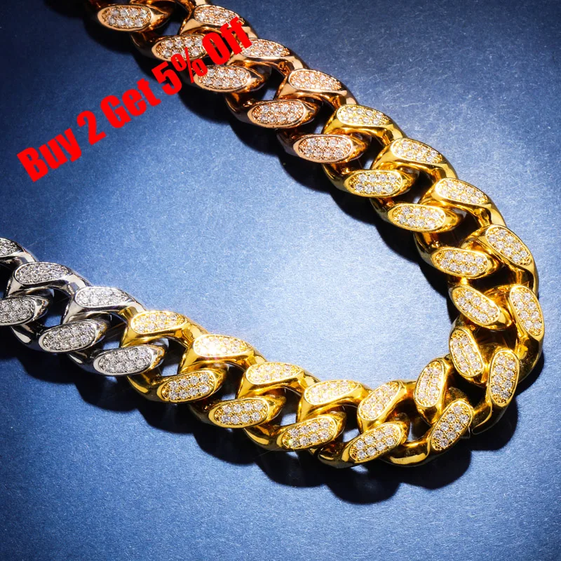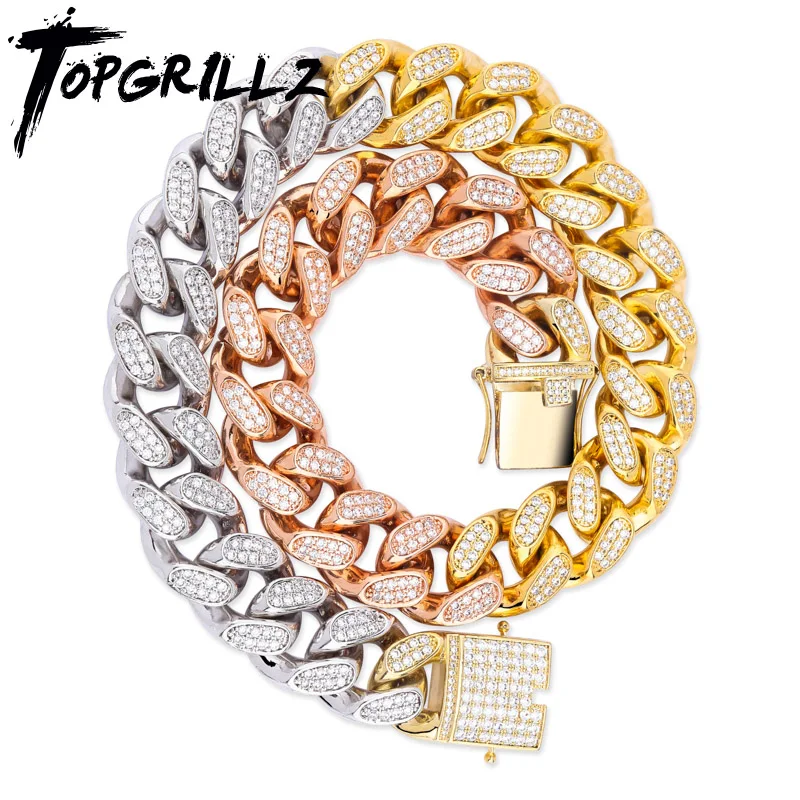 HOT SALE TOPGRILLZ Copper Gold Color Plated Iced Out CZ Stone 14mm Chain Necklace Hip Hop Rock Male Jewelry